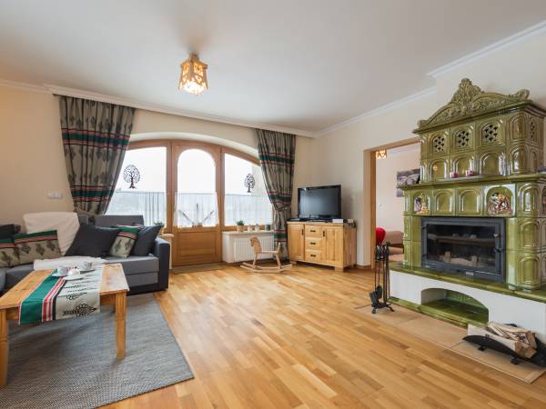 W salonie znajduje się ornamentowy kominek, który rozgrzeje wszystkie zmarznięte dusze. Z każdego z dwóch pokoi apartamentu Tatrachata oraz tarasu podziwiać można panoramę Tatr. Apartament posiada jedno miejsce postojowe oznacznone nr 7 na monitorowanym parkingu znajdującym się na terenie posesji oraz bezpłatny dostęp do Internetu Wi-Fi.